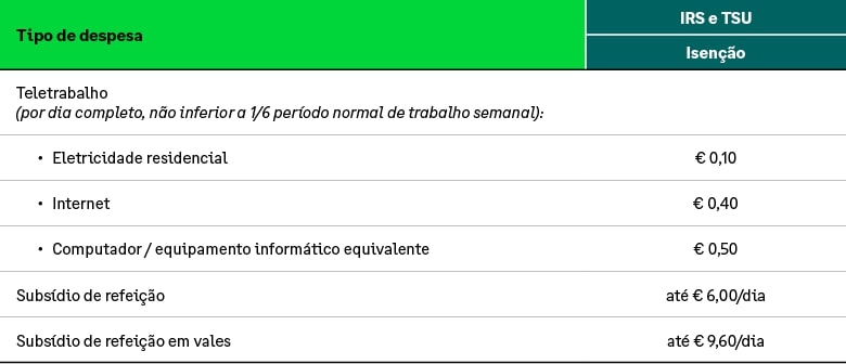 Subsídios de refeição[11] compensação pelo teletrabalho[12]