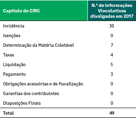 Consultado o Portal das Finanças em “Informação Fiscal” >” Informações Vinculativas” > ”Rendimento” > ”IRS”, verifica-se que foram emitidas 49 informações vinculativas sobre o IRS em 2022 e nenhuma em IRC.