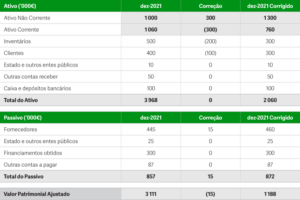 - Ótica Patrimonial: Mais utilizada no âmbito da liquidação de empresas. Procura determinar o cálculo do Património Líquido Ajustado, com Ativos e Passivos ajustados ao valor de mercado e após correções contabilísticas necessárias. Há que ter especial atenção ao valor dos imóveis e equipamentos (podendo ser necessário uma avaliação independente), bem como verificar outras rubricas relevantes como Clientes e Inventários.